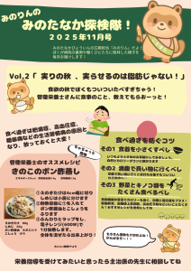 みのりんのみのたなか探検隊11月号をお届けします。 食べすぎを防ぐをテーマに、当院の管理栄養士がおすすめするレシピも公開中! ぜひご覧ください。