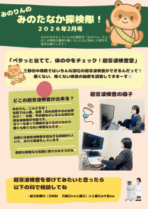 みのたなか探検隊2月号 みのりんのみのたなか探検隊2月号をお届けします。 今月は超音波検査についてです。是非ご覧ください。